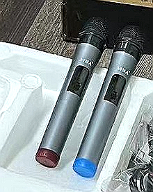 Funcționalitate: Setul include două microfoane. Capetele microfoanelor au o culoare diferită, ceea ce poate ajuta la diferențierea utilizatorilor.